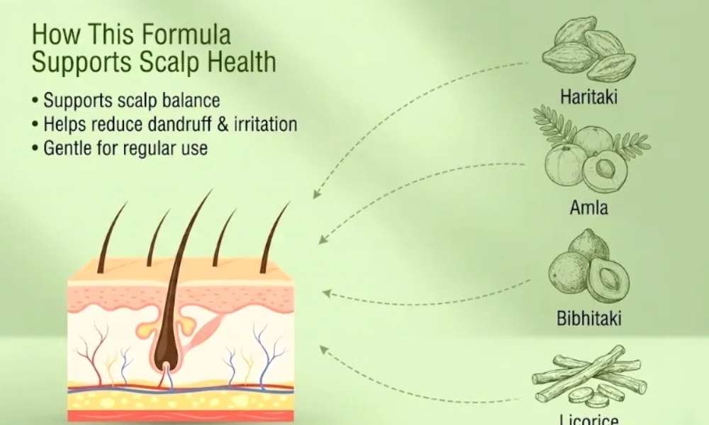 Amalaki (Emblica officinalis) – Rich in antioxidants, supports hair strength