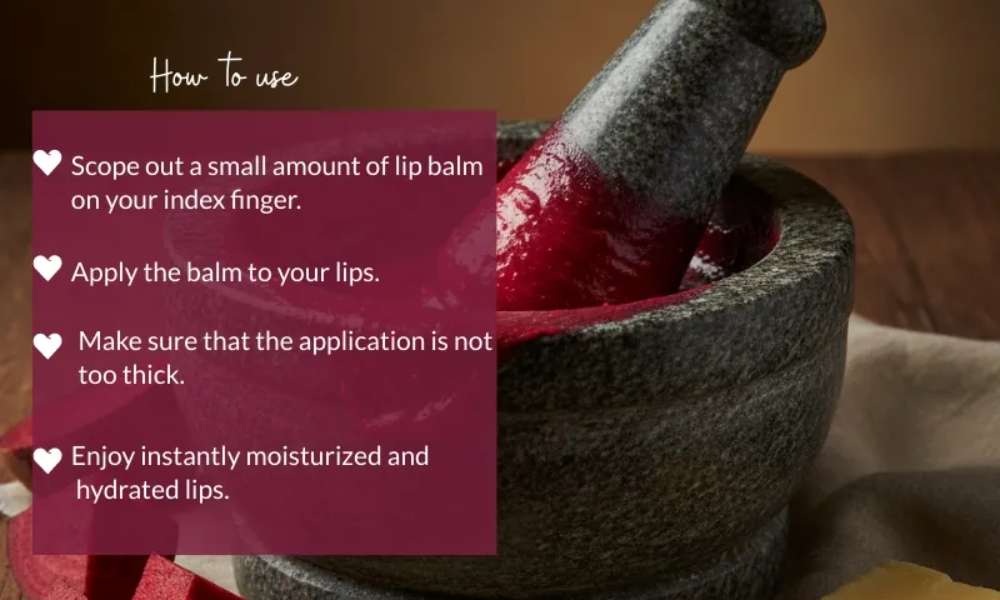 Apply a small amount evenly on clean lips. Reapply as needed for hydration and natural tint.