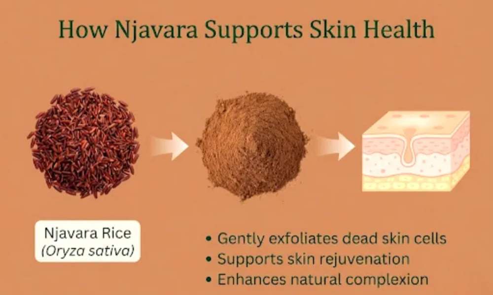Njavara is a unique medicinal variety of rice traditionally valued in Ayurveda for its nourishing, rejuvenating, and skin-supportive properties.