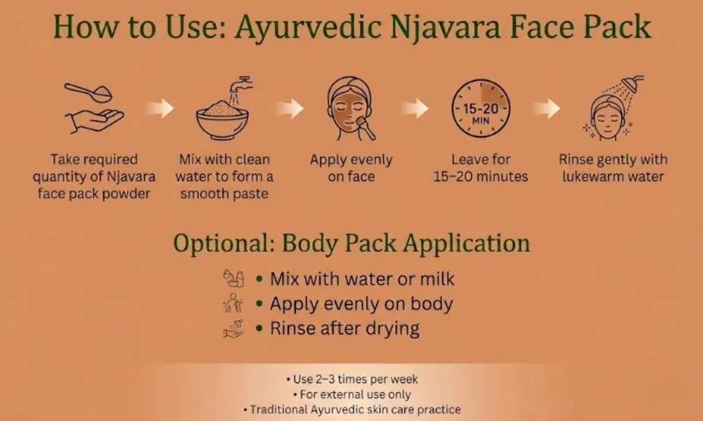 Dr Treesa’s Njavara Face Pack is a doctor-formulated Ayurvedic skin care preparation made using traditional medicinal Njavara rice powder, an ancient grain widely used in Ayurveda. The formulation is designed to gently cleanse, exfoliate, and support skin rejuvenation while maintaining the natural skin barrier. It is suitable for regular skin care and focuses on skin health and balance, rather than cosmetic enhancement.