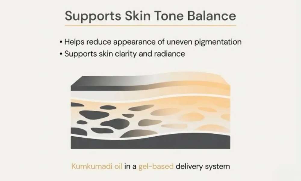 Enliven Soundarya Kumkumadi Face Gel is a doctor-formulated Ayurvedic skin care preparation developed to support skin tone balance and pigmentation care. The formulation is based on classical Kumkumadi oil, combined with a modern gel-based delivery system that allows faster absorption without oiliness. This lightweight gel helps maintain skin hydration, supports skin clarity, and improves overall skin comfort, making it suitable for regular day and night use. The product focuses on long-term skin health and balance, rather than temporary cosmetic effects.
